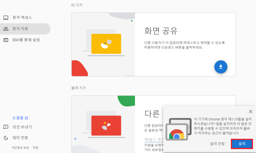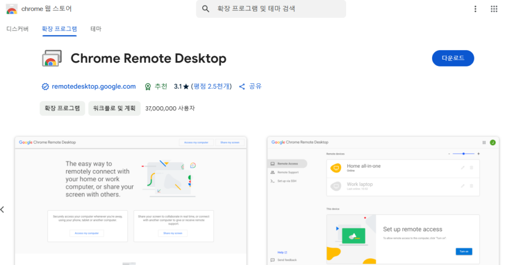 Chrome 원격 데스크탑을 사용 하기 위해선 확장 프로그램 설치가 필요 합니다.
