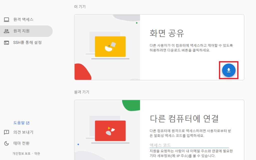 Google-RemoteDesktop : https://remotedesktop.google.com/support/ 사이트에서 다음과 같은 방법에 따라 프로그램을 설치 합니다.