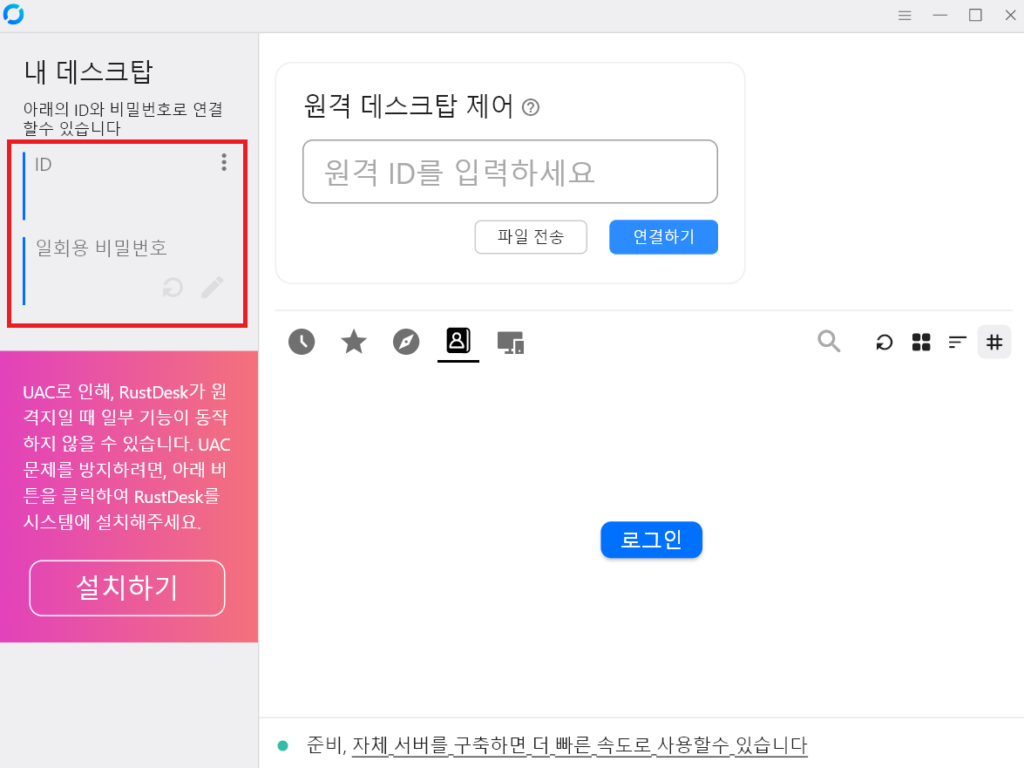 작업이 완료되고 rustdesk 탑은 종료 합니다.